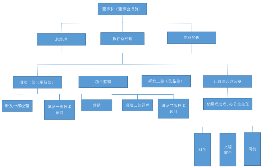 南京香蕉视频APP在线观看測控技術有限公司實施董事會領導下的總經理負責製的現代企業管理製度,全麵負責企業的生產、經營、技術、營銷等各項管理工作,下設副總、項目監理、軍品研發部、民品研發部以及行政辦公室。