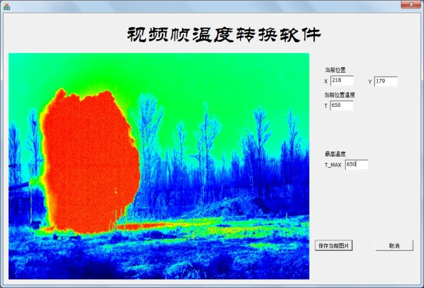 1280×800 采集時長 ≥10s 可按用戶要求配置濾光鏡,以防敏感器件飽和 高速攝像測溫軟件讀取保存於計算機的視頻文件,通過選取不同幀下的圖像,軟件自動計算當前圖像RGB值對應的溫度。在軟件中,可以在圖像顯示區域中選中某一點點擊,選中某一像素,在對話框右側顯示當前像素的位置,當前位置溫度顯示的是當前像素經過溫度轉換之後的溫度值。最高溫度文本框中顯示的整幅圖像中最高溫度值的數值大小。